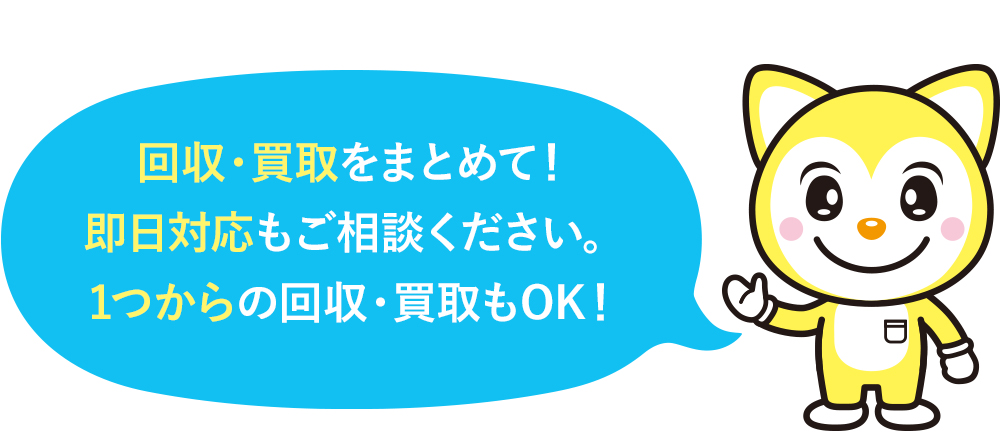 「今日か明日には回収して欲しい!」や「女性同行して欲しい!」等のご希望は、お問い合わせの際にお知らせください。即日希望の方は電話でのお問い合わせが簡単でおすすめだもん!